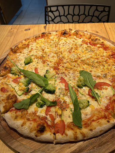 Read moreO espaço é pequeno e simples, são algumas salas com mesas e cadeiras. Serve algumas opções de sabores de pizza e hambúrgueres. Pedimos uma portuguesa tamanho família, que deveria vir com 10 pedaços, mas os pedaços não têm um tamanho padrão, 2 vieram bem pequenos, então fica parecendo uma pizza de 8 pedaços. A pizza é boa, mas podia ter mais recheio (a portuguesa quase não tinha ovos e azeitonas). Também pedimos uma pizza tamanho família 1/2 carne seca e 1/2 pop. Chegou completamente fria e com o mesmo problema da divisão das fatias (2 minúsculas). Infelizmente não foi uma boa experiência. 😐 O pedido demorou e ainda chegou frio. Valor de cada pizza pedida: R$80 cada.