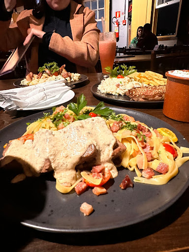 Read moreFomos em grupo ao restaurante, adoramos o ambiente, a decoração, a vista da rua, a música, o atendimento (alugamos uma das moças para várias fotos kkkk e ela foi super gentil). Dos pratos pedimos um risoto vegetariano (o que eu comi), um ancho à piamontese, uma picanha suína ao molho de rapadura e um filé mignon grelhado ao molho de mostarda Dijon com fettuccine ao alho e óleo, acompanhado dos drinks Moscow Mule e uma Gin Tônica de morango. Tudo estava sensacional, no ponto certo e excelente em quantidade, todos elogiaram.