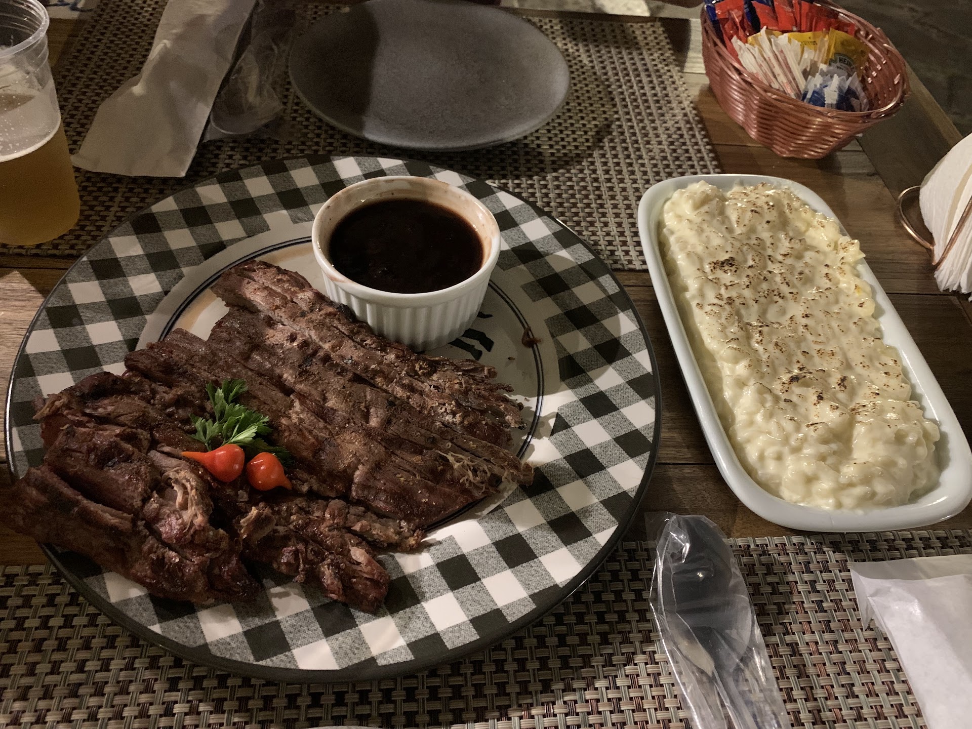 Gostamos tanto que jantamos lá duas, das três noites que passamos na cidade. No primeiro dia pedimos alguns drinks, que estavam bem bons, com preço médio de 30 reais. Única parte negativa é que quem senta na parte de fora é servido com copo de plástico, mas ok. Para o primeiro jantar pedimos Bombom de Alcatra acompanhado de farofa de banana com ovos. Estava simplesmente delicioso! Melhor farofa que já comi! No segundo dia pedimos File ao Molho Parrillero e, seguindo indicações dos usuários do Maps, risoto de limão siciliano. Outro jantar delicioso, o risoto é simplesmente perfeito.