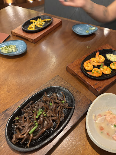 Read moreExperiência incrível , pratos muito bem elaborados, montados esteticamente. Comida realmente saborosa e atrativa. Desperta a vontade em saborear. Adorei alguns sabores curiosos, a gastronomia impecável!!! No início por não sabermos como funcionava o rodízio ficamos na mesa e houve uma certa demora para algum garçom vim até a mesa. Tentamos olhar para algum garçom e assim conseguimos contato. Demorou bastante para chegar os pratos a mesa, só aí percebemos que os pratos iam vindo. Veio tudo de uma vez só ficamos apertados , com a mesa cheia. Tivemos uma certa dificuldade para ficarmos olhando e pedindo outras opções do cardápio, não sei se por causa do local cheio. Existe nas mesas onde não tem a parede , um QR code no meio da mesa , sugiro que todos eles fossem no cantinho da mesa para não atrapalhar as fotos dos clientes e também deixar pessoas que portadoras do TOC mais confortáveis , isso desencadeia gatilhos( eu quase arranquei kkkk). No final, minha amiga ia saindo com a água, e o pessoal do caixa não deixou , por ser produto do rodízio . Sugiro que abram excessões , porque isso nos constrangiu. Não faz lógico vocês pegarem a garrafa de água de alguém só para descartar, ela acabou tendo que beber o restante da água justo ali frente ao caixa e foi desagradável. Se fosse refrigerante ou se o recipiente fosse de vidro e ou pertencesse ao local , fariam sentido. Esse foi o caso mais gritante! Se for água acho que poderia ser excessão , já que ela pagou por ela tecnicamente! Fora isso , gostei muito! Para eu voltar teria que ser algo realmente muito , mas muito atrativo para mim . Não sei se eu voltaria, teria que me chamar muito atenção para voltar. Mas estão...