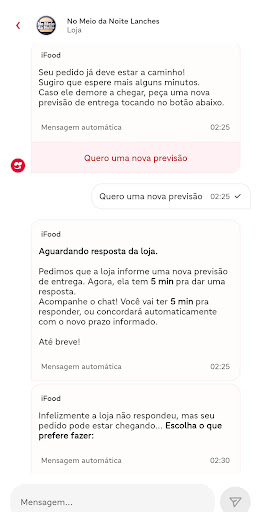 Não peçam delivery !! Fiz um pedido quando cheguei do trabalho as 1:11 pois tinha que acordar ao dia seguinte as 6 da manhã. A loja aceitou o pedido lhe mandei um chat pedindo para que me informasse quando o pedido saísse de lá pois o meu interfone está com problemas e só funciona quando quer então eu tenho esse hábito de avisar ao vendedor. A previsão de chegada do pedido estava para as 2:08 mas quem disse que o pedido chegava? Não chegava , mandava mensagem pra loja e nada de ninguém responder , fiquei nervosa e falei algumas coisas e ai só assim responderam. Olha que loucura né!? Estou aqui amigos ,as 3:14 esperando pq a loja disse que já está saindo , volto aqui pra dizer se fiquei ate a hora do meu compromisso e se tive meu reembolso caso meu pedido não chegue até mim. EM DELIVERY É PÉSSIMA! Nunca fui pessoalmente mas é aquele ditado a primeira impressão é a que fica ! Obs: você liga e da...
