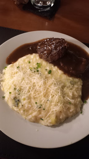 Um excelente local para se comer bem e ser bem atendido em Dourados. Tem estacionamento próprio, bem grande. Pedimos: Ancho, Fraldinha Red e um risoto de filé com queijo, estavam todos perfeitos, ponto da carne veio perfeito, de acompanhamento pedimos também os legumes na parrilla e uma salada verde, todos muito saborosos. Vale ressaltar que apenas um prato de carne serve bem duas pessoas com mais dois acompanhamentos, pedimos um para cada um mas sobrou carne. Pedimos também três tipo de sobremesa: uma sobremesa de sorvete de queijo com goiabada, um tiramissu e uma sobremesa de coco. Todas estavam ótimas, mas com certeza a de sorvete de queijo com goiabada eu diria que estava espetacular, pois é algo que não comemos no dia a dia sorvete de queijo e estava maravilhoso. Tomamos um vinho argentino um ótimo vinho tinto Malbec de corpo médio, chamado La Linda, recomendado pelo atendente, que foi extremamente atencioso e inclusive nos atendia chamando pelo nosso nome, isso foi um ótimo ponto positivo pro local, eu diria apenas que falta um pouco mais de treinamento sobre a arte de servir vinho, mas nada que um curso com um bom sommelier não resolva. A decoração e o ambiente todo é muito lindo. O preço é algo a ser relatado, pois os pratos de carne custam em média 120 reais, e os acompanhamentos em media 20 a 30 reais, mas se considerarmos que um prato de carne com dois acompanhamentos serve duas pessoas, acho que o valor por pessoa está muito aceitável por tudo que o local oferece. Enfim recomendo e voltarei com certeza. Minha experiência foi numa terça-feira a...