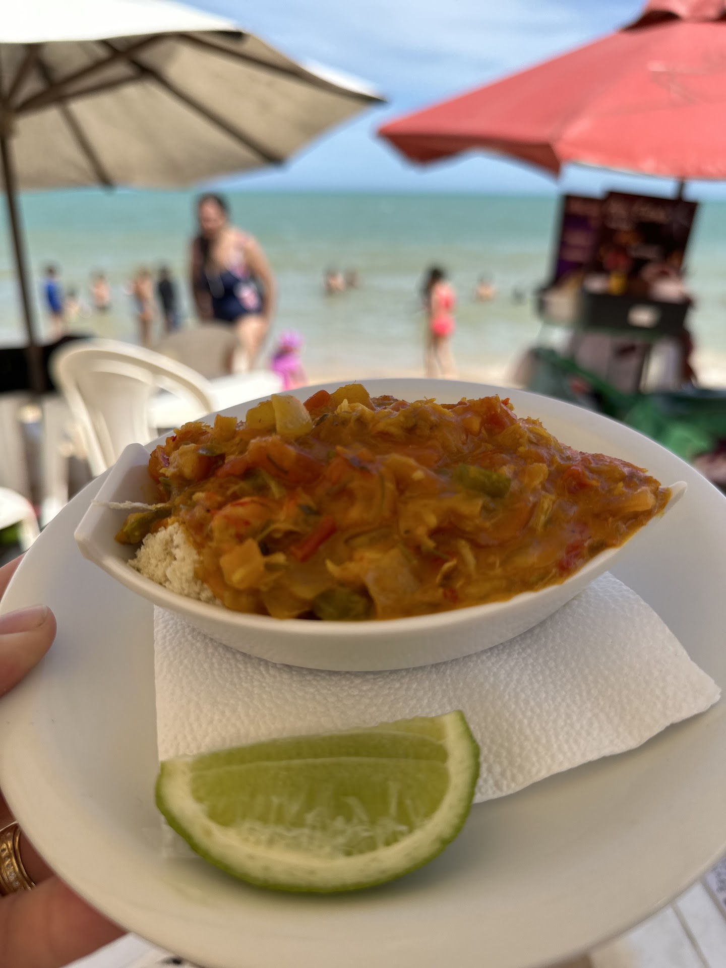 We came here with a family (8 people total) on a HOT summer day, in the middle of the busiest season of all, even during COVID. The service and waitstaff were actually quite great. Helpful! They were out of certain flavors of juice which was understandable, there were no tables in the front near the beach, just in the back towards the parking lot entrance. Out of the 8 family members, 4 of us are vegan and we had the "mouqeca de banana" and it was absolutely delicious. Finger licking GOOD! We highly highly enjoyed it. I would definitely be back to eat it again just at a time when it is...