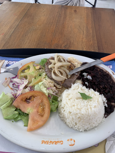 Resumindo: a comida é razoavelmente boa, mas não compensa o custo-benefício. Cerca de 95 reais para três refeições. Com esse valor três pessoam almoçam na orla norte de Porto Seguro tranquilamente. Falo porque moro no local e sei. Por fim, conheço Giraffas em Brasília (terra da franquia), Belo Horizonte, Goiânia, Maceió, Foz do Iguaçu, Fortaleza e São Paulo. Esse de Porto seguro não atende o PADRÃO GIRAFFAS de franquia. E nem mesmo o padrão baiano de atendimento de excelência. E não vem com aquela conversinha de culpar funcionários daqui da cidade não!...