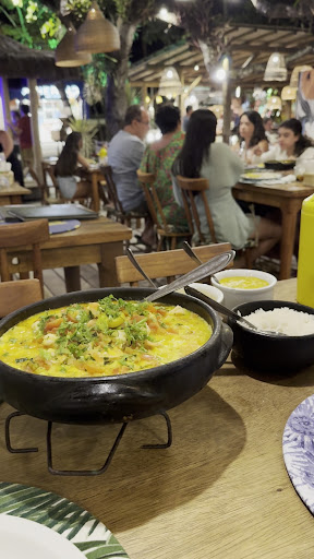 Read moreFomos atendidos pelo garçom Anderson, que foi muito educado e prestativo. Ao chegarmos, informou que o cardápio era de comida baiana e, ao fazermos o pedido, já avisava se o prato levava coentro, dendê, entre outros ingredientes. Chegamos ao local pelo ambiente bonito e pelo som ao vivo. De entrada, pedimos isca de dourado, e nos pratos principais, bobo de camarão e dourado com camarão. Ambos os pratos estavam saborosos e incríveis, servindo perfeitamente seis pessoas. Eles possuem drinks diferentes e gostosos. No entanto, a carta de vinhos deixa a desejar, pois a maioria dos vinhos que não estão no cardápio não estão disponíveis no restaurante. O banheiro é muito limpo; havia uma funcionária próximo, sempre limpando e repondo o necessário. Apesar de terem apenas dois banheiros, no dia não houve fila.