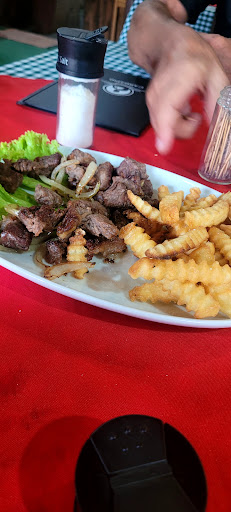 Up for an adventure? Here's how to have an authentic, regional Brazilian meal, even if you don't speak a word of Portuguese: Go to this place. Order the moqueca ("moo-kek-ah"). You can choose fish ("pay-shee") or shrimp ("come-ah-rohn"). It's a stew, served piping hot in a stone pan, with the marvelous Brazilian seasoning and sides of rice, farofa (corn flour) and pirão (a thick fish purée). For a drink, either a beer ("sail-vay-jah") or a Coca-Cola. Whatever else the waitress says, just nod in agreement (trust me). When served, mix all the sides with the stew, and eat away. Just watch for fish bones, they're cooked with the fish (by design) and you'll have to remove them while eating. Enjoy and...