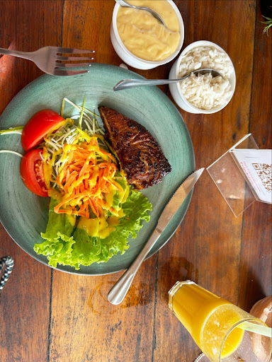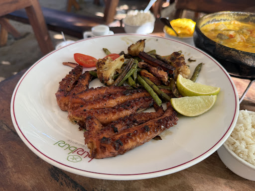 Friendly service, despite language barrier. Helped me connect to the wifi, had the fish with salad mash potato (soo good) and coconut rice. Tasted lovely and fresh. They did fry the fish so it had a super crispy outside, only feedback would be no to fry so much as it made it...