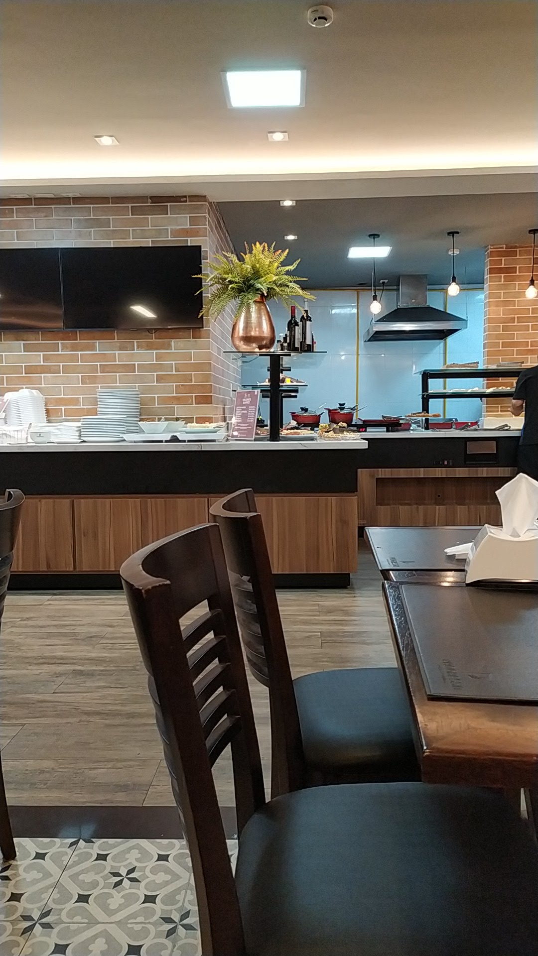 Read moreGostei do ambiente, é amplo, bonito, com tv e as cadeiras são bonitas. A comida estava gostosa, mas pelo horário estava já tudo no fim. Porém, o que eu comi estava bem gostoso. No serviço passei por 2 situações, primeiro que ninguém veio perguntar se queríamos algo para beber e segundo foi que após o pagamento, tentamos passar na catraca e não ia, ficava vermelho. Voltamos no caixa e a atendente só respondia, pode ir, pode tentar. Acredito que o pagamento não tenha sido finalizado, só acharia legal dizer ao cliente: opa, não finalizei aqui, pode tentar que agora vai. Mas enfim, acho que são questões de final de ano, né?...