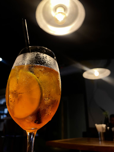 Read morePerfeito para um date romântico com seu amorzinho (e avós acompanhando). Especialmente no dia que fomos estava uma chuvinha gostosa e uma artista incrível cantando e tocando teclado. Eu e meu namorado não somos fãs de música ao vivo, mas unicamente se é uma barulheira de microfone e instrumentos. A música suave com a ambientação de luzes quentes foi a combinação perfeita. Pedimos o hambúrguer com batatas e, por mais que pareça pequeno, é a quantidade ideal (quase que não consigo terminar). O burguer é bem recheado e as batatinhas, bem sequinhas, dão o toque final pra sair rolando pela porta depois. Pedi também um aperol spritz que estava no ponto. Diversas vezes pedi em outros lugares e senti amargura. O drink estava bem feito e tinha um toque de nozes (?) ou sou eu ficando maluca.