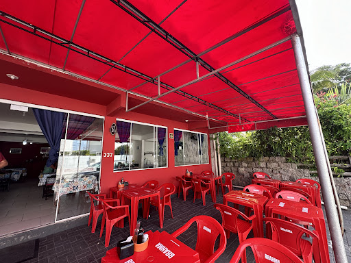 This restaurant looked almost always busy and popular. So I went on a rainy day to avoid long waiting lines. The service was quick, waiter did not speak English but didn’t make a fuss about, he tried to understand what I wanted and even with lack of English we was able to recommend a dish for me. I ordered the dish of the day with fish and shrimp. The beer came iced with literal ice block inside bottle(not sure I’m fan of that) the food came in quick and it was delicious. For the price you pay it’s worth it. Presentation was great. As far as atmosphere it feel like an authentic Brazilian restaurant with plastic tables and chair and tv running on the background. It does have a patio...