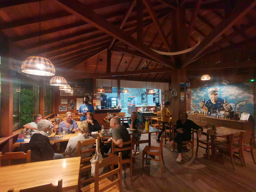 As mesas na areia da praia são muito boas para aproveitar o ambiente e estar mais perto das crianças que podem brincar tranquilamente no mar calmo da praia do Pantano do Sul. Pedimos a porção petisco da capitã, 139 reais, uma variedade de frutos do mar e fritas. A porção é pequena para o valor e alguns itens vieram quase queimados como a casquinha de siri e a isca de peixe. A caipirinha de vodka com morango, 20 reais, veio com pouco gelo, bastante aguada e gosto forte de vodka, não foi bem preparada. Ao final ainda pedimos dois pastéis de queijo, 9 reais cada, que demoraram muito apenas depois de alertar o garçon quanto à demora fomos servidos. Os garçons foram bem atenciosos durante todo o tempo. De maneira geral o lugar é bem legal e o atendimento é muito bom. Mas nossa experiência com a cozinha não foi legal. Espero dizer diferente em uma próxima...