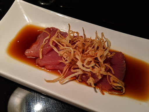 *Primeiro Prato: Tiradito de salmão com um molho bem gostosinho, infelizmente achei as fatias mto finas (pensei nossa um omakase diferente, com salmão). *Segundo Prato: Tartar de atum com bolinho se arroz e ovas de peixe voador. Bom, sem surpreender. *Terceiro Prato: Sashimi de salmão e molho agridoce com wasabi e salada. Não gostamos do molho, muito doce, era mais um molho doce apimentado, gente o wasabi era em pasta 🫣 De novo salmão 😅 *Quarto Prato: Sashimi de atum com cebola frita, estava bom, sem defeitos esse prato. *Quinto Prato: sashimi de peixe branco selado, o molho desse sashimi era mto bom, mas o nosso peixe veio passado mesmo. Sexto prato: Niguiri de vieira e de barriga de salmão flambado. Tinha um molho adocicado. Setimo Prato: Uramaki envolto com tartar de atum marinado, maionese picante, recheio de camarão empanado e aspargo, era bem bom o camarão estava crocante e o aspargo também, e veio quentinho na nossa mesa. Oitavo prato: Uramaki envolto com lâmina de avocado recheio de tartar de salmão e molho de omelete doce. Uma decepção esse omelete doce. Sobremesa: pudim de laranja, o que se esperar de um pudim de laranja, é pior que o de leite.