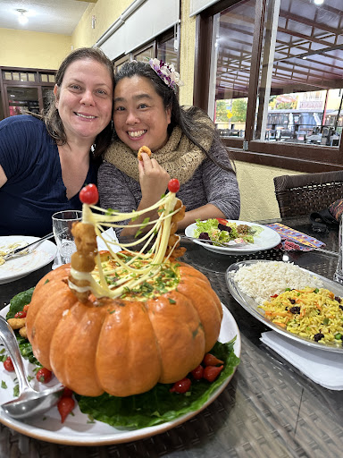 Yeah, it was a lot of food. We took home the stew by scraping off the innards of the orange beast - like a spaghetti squash on the inside. No joke: it fed 4 of us for lunch next day. It was...