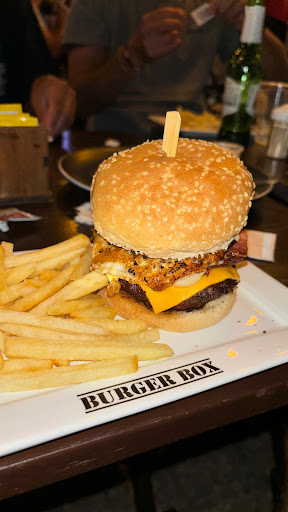 Burger and atmosphere were great. First it took too long to get drinks we ordered. The drinks came after the burgers. It would have been a better experience if the drinks came right away while we waited. It was difficult to get the waiters attention, we just wanted to ask for our drinks while we waited. Would be good if Burger box could produce the same great burger...