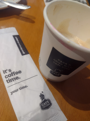 Excelente café, saboroso, na temperatura ideal, bolo de cenoura com calda deliciosa, empada de palmito cremosa e na temperatura perfeita. Pontos que poderiam ser melhores: poderiam servir na xícara o café, pois estava consumindo dentro do local, servir a empada no prato e não no saquinho. Entendo que põe conta da festa da cerveja , receberam orientação de só servir para viagem, mas expliquei que não iríamos sair de dentro do local para consumir, menso assim, foi servido tudo para viagem. O banheiro estava com placa de interditado, não tive onde lavar minha mãos para fazer o lanche no local. Falei com um moça que cuidava da cozinha, ela gentilmente ofertou de eu lavar na pia rsrsrs. Achei um carinho dela me ajudar . Mas deveriam disponibilizar o banheiro, bem ruim não poder usar, vejo que deveriam fechar até normalizar esse ponto. Outra coisa que não entendi, é não ter revista, um jornal, livro disponível para podermos ter a cultura, proposta no próprio nome do local. Apenas observei 3 livros servindo de prateleira para um vaso de plantas. Sugiro terem a oferta da cultura também. Mas fomos super bem atendidos e tudo consumido estava delicioso! Obrigada, agradecimento especial a moça gentil que me deixou higienizar as mãos na pia e a que nos serviu na mesa....