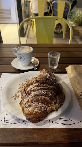 Read moreViemos conhecer, o primeiro funcionário não sabia o que era Floripa em dobro, a segunda nos falou o que participava do Floripa em dobro (croissant doce e sem recheio) então pedimos algo salgado pra comer antes de pegar o Floripa, depois quando fomos pegar a terceira atendente disse que o Floripa em dobro era apenas pra croissant sem recheio e dois outros pastéisinhos pequenos e que eu teria que levar um café junto (eu como não bebi café) pedi uma água e ela disse que não poderia trocar e se quisesse poderia levar então concordei por que levaria para outra pessoa tomar. No final ela veio com dois cafés na xícara, sem o pra viagem como tinha informado. Depois quando fomos pagar pedimos duas baguetes para levar e a atendente colocou umas só. Resumo:comida boa, mas...