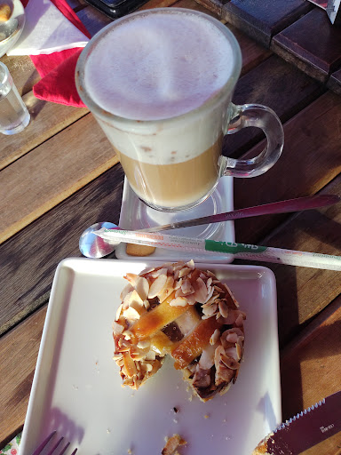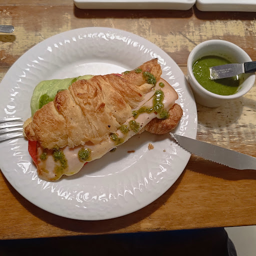Read moreEstavamos acampados com nosso motorhome, próximos dalie e famintos. DELICIOSA refeição feita com perfeição! Fomos super bem atendidos, por 2 queridísimas muito atenciosas. Estávamos querendo comer algo salgado, beber café e comer um doce. Salgado- Pensa num croissant quentinho e super crocante. Penso! Agora acrescente peito de peru, queijo, alface crocante e tomate. Acompanhado por um mini ramequim com pesto de manjericão deliciooso. Um bummm de sabor. Café descafeinado Orfeu com leite vegetal ( que uma cafeteria bambambam próxima a eles, não tem!) Estava tão gostoso que nem precisou de açúcar. Meu querido comeu um croissant de frango crocante e uma empanada de carne ( Sabor, sabor, sabor! super temperados e equilibrados). De doce pedimos uma tartelete de doce de leite com pranilê de amêndoas. Massa maravilhosa e doce de leite muito gostoso (obs: Não consegui comer tudo, mas o querido acabou com ela) e mil folhas super crocante que elas recheiam na hora ( era a escolha dele mas eu acabei com ela kkk). Pedi o recheio de creme de confeiteiro. Tudo fresquinho e muito bem feito ( com técnica profissional). Se vc quer comer e beber um café com qualidade, sabor por um valor justo ( feitos com insumos excelentes, sou confeiteira e sei bem apreciar o que é bom) e sair feliz, aqui é o...