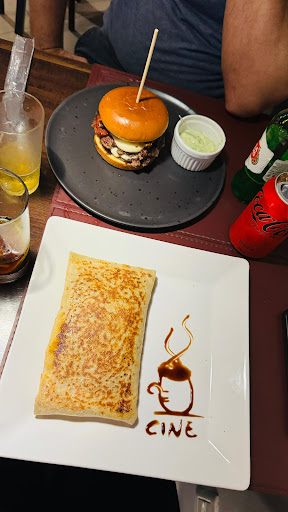 Read moreO Cine Café, no Centro de Florianópolis, é realmente uma ótima pedida! O espaço é pequeno, mas cheio de charme e detalhes que fazem a experiência ser ainda mais gostosa. Pegamos o combo do "Floripa em Dobro" e aproveitamos várias delícias. Começamos pelo smash Darth Vader Duplo (R$ 43,00), que estava impecável — super suculento e com uma maionese incrível. Para completar, ainda pedimos o crepe doce Viola Davis (R$ 33,90), o crepe Al Pacino (R$ 36,00), e o crepe doce Jane Fonda Banana (R$ 26,90). Todos os crepes vieram bem recheados e estavam deliciosos! O atendimento foi ótimo; a equipe fez a gente se sentir super à vontade, e tudo chegou rápido na mesa. Pedimos uma cerveja e uma Coca-Cola lata, e, no fim, a conta ficou em torno de R$ 114,00 com o desconto do Floripa em Dobro — super justo para a qualidade e a quantidade! Enfim, experiência recomendadíssima! Se você quer um lugar aconchegante, com boas opções e atendimento bacana, o Cine Café é uma...