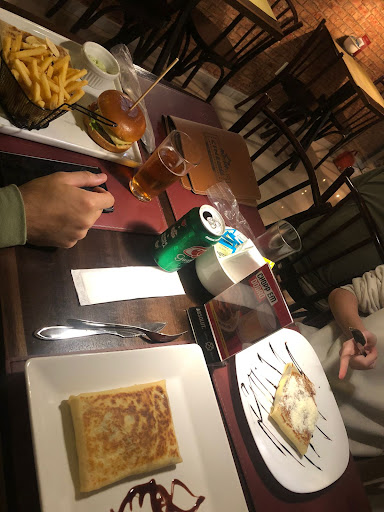 Comida: o gosto em si estava muito bom, os ingredientes parecem ser de boa qualidade e tudo mais, PORÉM é EXTREMAMENTE pequeno. Sinto que estou comendo em miniatura, me sinto até de certa forma "enganada", pois é impossível que alguém sustente sua fome comendo um hambúrguer E um crepe, tão pequenos! Pegamos o combo que vem um hambúrguer, um crepe doce e 100g de batata, e a batata satisfaz mais do que o hambúrguer em si, de tão pequeno que ele é. O crepe é pequeno mas eu até entenderia por ser a sobremesa; o doce. Mas o hambúrguer ser ainda menor que ele não me desceu, e já que o principal de um restaurante é a comida, dei apenas 2 estrelas mesmo que o atendimento seja...