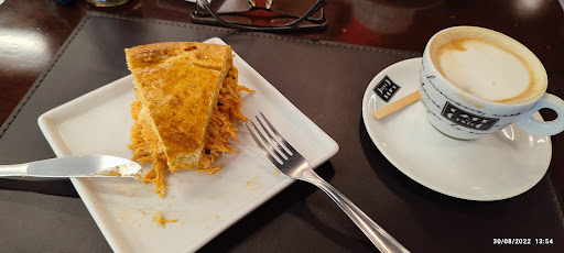 Read moreÉ um café pequeno, então as opções de tortas e salgados não é muito grande. Mas para um lanche rápido, vai bem. Vi que servem refeições, tipo prato executivo. Hoje tinha strogonoff e panqueca, por exemplo. O atendimento é bastante cordial. O café estava perfeito. Comi um quindim. Muito bom. Achei legal que trouxeram colher para comer o quindim. Minha amiga comeu uma torta de maçã e banana, que era sem lactose. E tinha também brownie sem glúten e sem lactose.. Tem ar condicionado na parte interna. Ou mesinhas na rua, opção para dias...