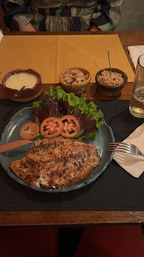 Read moreQuando você passa na frente, não imagina a magnitude da refeição. O atendimento foi impecável, tudo foi bem explicado, a garçonete conhecia do cardápio. Pedimos 4 pratos no total e simplesmente eram ótimos, arroz de carreteiro muito bem temperado, todos os pratos vieram com saladas e polenta ou batata frita, a farofa é extremamente saborosa combina com os pratos apresentados. Os cortes de carne eram muito bem servidos e ao ponto do cliente (pedi um entrecôte ao ponto), estava sensacional! Por fim as refeições estavam muito bem executadas e servidas (tamanho da porção ideal), o sabor era único com sensação de refeição caseira. Havia opção vegana. Recomendo demais o...