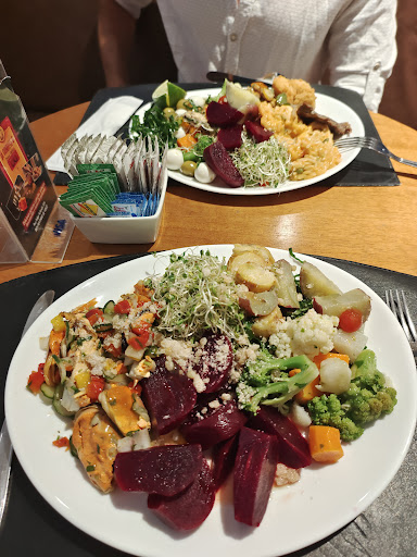 Sans aucun doute le meilleur buffet du centre de Floripa. Bonne nourriture, avec un prix plus que raisonnable. Beaucoup de variété de salades, de viandes, de bonnes options. Il y a toujours des desserts, le pudding est très bon, le sagou est merveilleux. Et il y a toujours un expresso et un muffin gratuits, il y a aussi du thé. J'y vais toujours avec ma famille et nous adorons...