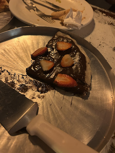 As pizzas são ok. A massa é boa, mas cerca de um terço da pizza é só borda. O recheio é muito escasso, no sabor filé mignon, por exemplo, veio apenas um pedacinho por fatia. Pelo valor cobrado, esperava algo mais generoso. É possível comer uma pizza muito mais bem servida (e mais em conta) em outros lugares de Floripa, como na Spitfire (igualmente com massa de fermentação natural). A pizza doce também decepcionou, pouco chocolate, não conseguiu sequer matar a vontade de doce de ninguém na mesa.