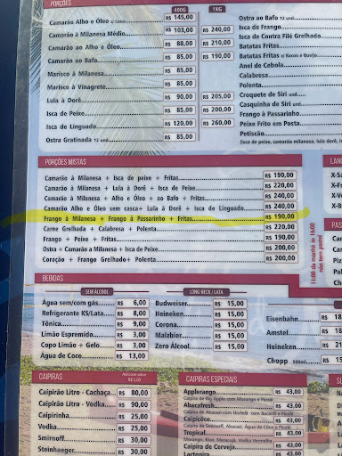 Read moreCapirinhas do mel... amazing. And the owners, their family, and staff are very friendly and attentive. The Everything Seafood Platter (translated) was some of the best food we've had in brasil, easily. Chopp was cold, and we customized our capirinhas to be more amargo and more forte, owner is a master craftsman of alcohol mixing. Our waiter was a great example of the whole staff: friendly and attentive. This spot was a hidden treasure. A diamond in the rough that surprised us. Gauchos, parabens. Obrigado Fernando chileno e michael jymmy e paula e...
