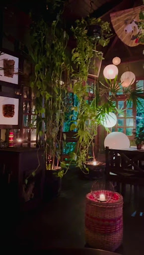 Atmosphere is very cute .. a mixture of Thailand, Japan and Bali all in one place but tastefully put together with dim romantic lamps