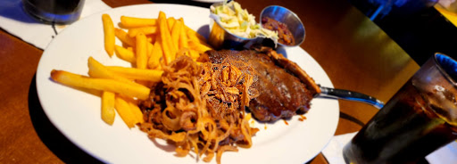 Como fomos com nosso filho de 8 anos, que não come muito, pedimos apenas dois pratos, 1° Ribeye no estilo Surf n' Turf, com camarões salteadores, e o 2° Smokehouse BBQ Combo. Que em ambas as imagens é descrições, não deixam claro o excesso de pimenta e picanha da comido, o camarão, parecia estar comendo pimenta pura, já o grelhado, estava no ponto certo, e a costelinha do outro prato a mesma coisa, molho super apimentado.