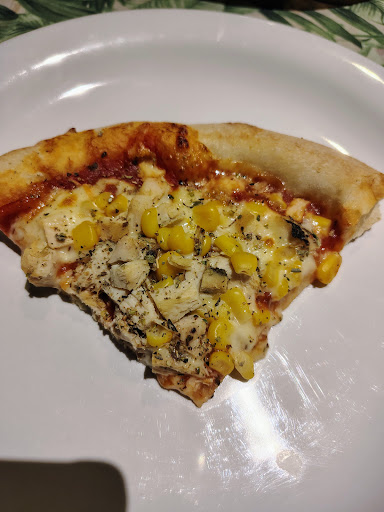 Read moreHavia duas atendentes, a mais nova atendeu muito bem, muito prestativa, mas a outra infelizmente mal na cara olhava.. Quanto ao ambiente, muito bom, só deixou a desejar na mesa, que parecia de um bar, e nas cadeiras pequenas (muito simples para o valor cobrado pelas pizzas), mas a iluminação e quanto ao barulho de conversas é bem agradável, tem uma boa acústica, e no dia tinha um casal trocando, muito bom, apesar de não falar que seria cobrado, pagamos com prazer! Quanto a pizza, olha, não sei se foi o dia, mas parecia pizza de caixinha de mercado, massa dura e praticamente não tinha recheio, além de não ter borda! Isso que pedimos três sabores bons, deu mais de 100 reais só a pizza, sinceramente não pagaria nem 50! É o relato de quem foi uma vez, quem sabe nos outros dias a pizza esteja melhor, mas eu não pago pra ver, não...