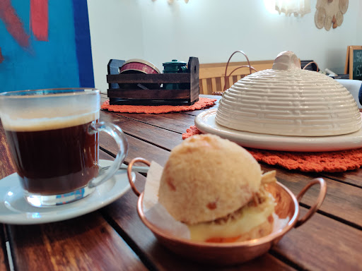 Read moreCafé e empório com aquela atmosfera aconchegante típica do jeitinho mineiro. Logo de chegada já enchemos os olhos com os produtos mineiros expostos nas prateleiras: doce de leite, queijos variados, goiabada, balas de mel, frutas em calda, geléias... Tanta coisa boa que não sabíamos para onde olhar primeiro. No balcão, o carro chefe da casa: pão de queijo! Puro ou recheado, uma ótima pedida para um lanche ou mesmo refeição. Também tem docinhos, bolos, empadinhas... Tudo feito ali mesmo! Para começar, pedi pão de queijo recheado com pernil, geléia de pimenta e queijo com requeijão de corte. Divino!! 😍 Recomendo!! O café, coado na hora num mini coador individual (uma graça!!) ou expresso, também vem de Minas. Delicioso. E de sobremesa, queijo (da Canastra) com goiabada. Perfeito! Atendimento muito atencioso e...
