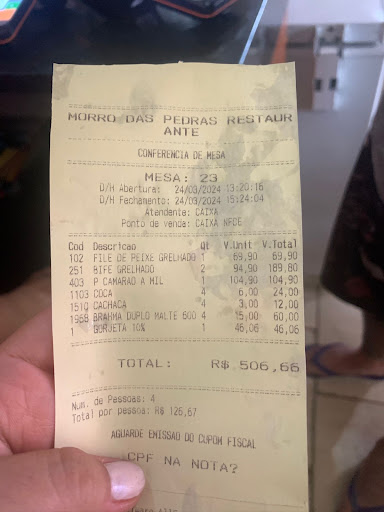 Começando pela MOÇA DO CAIXA É UMA BAITA DE UMA IGNORANTE, não sei se é esposa do dono, é dona, o que que é, mais é totalmente 0 profissional... continuando desse jeito o tratamento os clientes da forma que ela fez, o restaurante vai falir rapidão. Fomos almoçar em um domingo 24/03/2024 em 8 amigos, chegando lá o restaurante estava cheio, até ai tudo bem... O que aconteceu... pedimos uma porção de camarão, 1 prato com peixe grelhado para 2 pessoas e 1 de bife grelhado para 2 pessoas, porém o meu amigo que pediu 1 prato do bife informou para o GARÇOM ''quero 1 prato desse para 2 pessoas mas que serve 3 ou 4 '' o mesmo entendo através deste comentário que seria 2 PRATOS DE BIFE GRELHADO QUE SERVIRIA PARA 4 PESSOA mas ninguém se ligou que ele tinha entendido isso e solicitou os almoços. Demorou em torno de quase 2 horas pra chegar o almoço, quando chegou, questionamos e o mesmo continuou dizendo que seria isso e falou que não errou e que nós que informamos errado... tirando o caso da minha amiga que foi dito para ela que teria pedido mais cervejas 0 álcool sem ter pedido que também foi um caos... conclusão... meus amigos PAGARAM o bife para não ter problemas mas EU conversei com o PROPIETÁRIO onde informou sobre a situação e o mesmo foi EDUCADO (pelo menos isso, coisa que os garçons e a moça do caixa não foi) e mesmo assim o proprietário FICOU DO LADO DO GARÇOM POIS O MESMO INFORMOU QUE ELE NUNCA ERRA (SER HUMANO PERFEITO) mas antes de tudo isso houve um momento em que os garçons partiram pra ignorância sendo que ninguém de nós ficamos gritando com eles na mesa e ficamos constrangido... No final os meninos pagaram mas NUNCA MAIS VOLTAREMOS LÁ até pq sabemos que o ERRO NÃO FOI NOSSO E SIM DELES POR METER O LOUCO NA GENTE e outra... quando cada um foi no caixa pagar sua parte a moça do caixa não falou do 10%, descobrimos só depois que ela já tinha calculado e cobrou.. ABSURDO!!! (ELA SIMPLISMENTE NÃO MOSTROU A NOTA FISCAL, SÓ DEPOIS DO PAGAMENTO, EU QUIS VOLTAR MAIS PELOS MENINOS EU NÃO VOLTEI PRA PEDIR DE VOLTAR O VALOR DE VOLTA DOS 10%, a moça do caixa que fica cobrando deveria ter informado, o nervosismo estava tão grande que eu não lembrei desses 10%, apenas depois) Comida estava boa, mais o atendimento e a situação que passamos não, então mesmo que a COMIDA seja maravilhosa, nós jamais voltaremos.