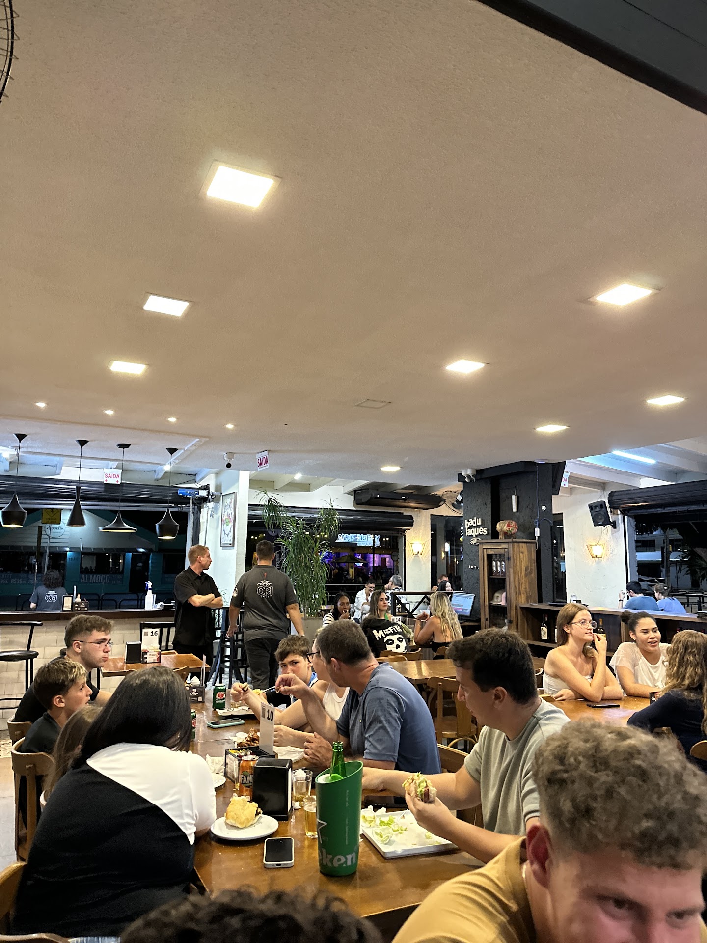 Ponto fraco que nao me permitiu dar 4 estrela não separam comadas de mesas grandes com muitas pessoas vc precisa marcar o que pede e depois vc vai no caixa e diz o que comeu so que antes te perguntam o número da comanda, uma por mesa nesse caso os primeiros a irem nao recebem extrato para conferências o que nunca aconteceu antes comigo e vc paga o valor q a caixa te informa e o último a sair vai ter q pagar se os primeiros esquecerem algo . O que me fez ir embora q sensação de algo errado . Pois se cobrarem algo a mais da pessoa q continuou na mesa ninguém saberá.