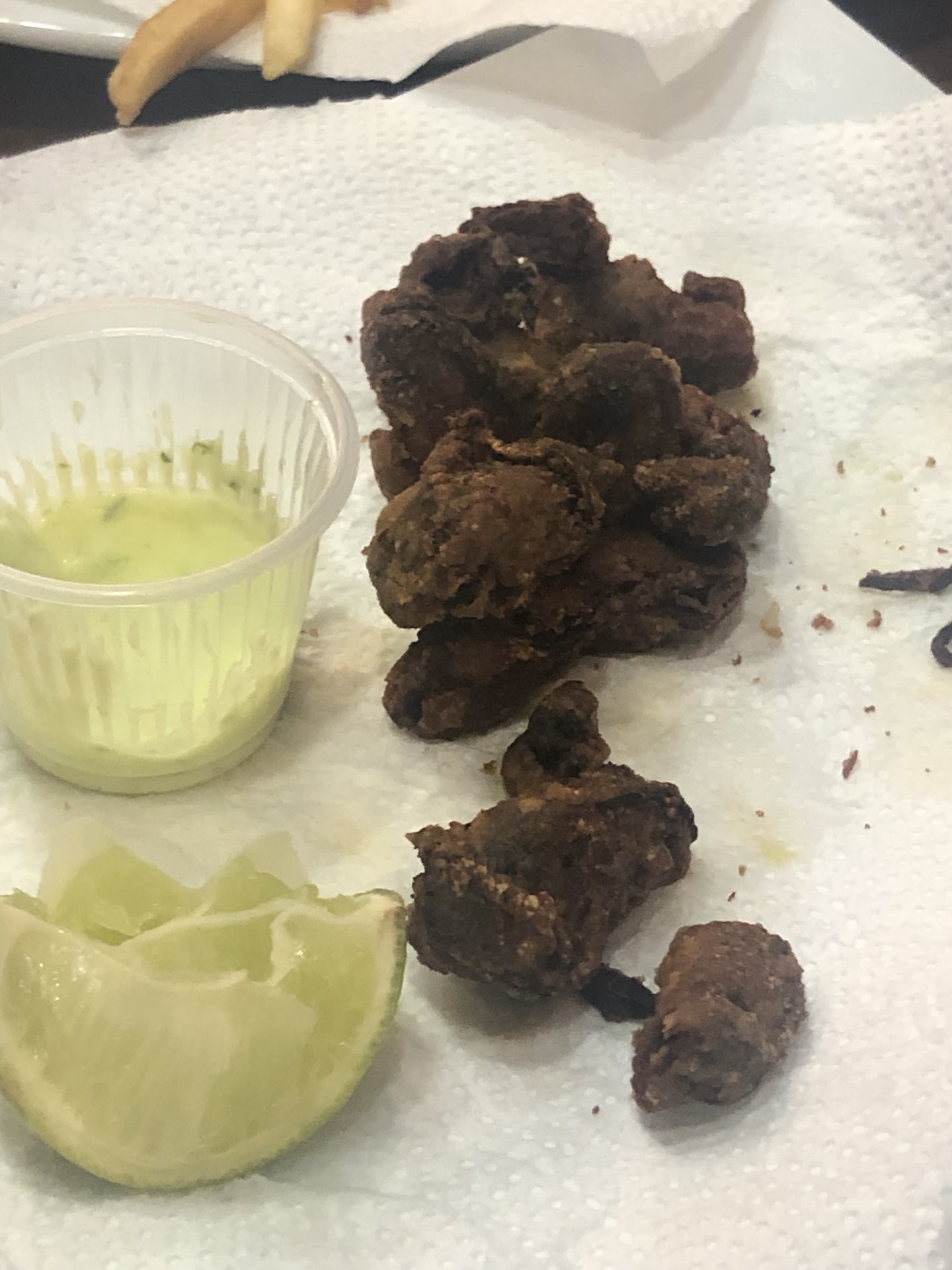 Quindim e pudim maravilhoso. Almôndegas excelente mas faltou vinagrete acho que combina muito mais que maionese verde com toda essa fritura, alias todos os pratos vem com a mesma maionese verde.
