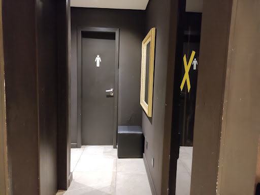 Ambiente ⭐️⭐️(2/5) ✅Aspectos bons: • Iluminação acolhedora (pontual e difusa) • Foyer/recepção com adega interessante • Banheiros limpos ☑️Problemas estruturais: • Falta de higiene visível (lixos abertos na área do bar e fachada) • Acessibilidade precária (escadas para salão principal, rampa íngreme na entrada, acessível para pessoas com mobilidade reduzida, mas para cadeirantes não) • Playground mal posicionado (fora do campo de visão dos pais e juntamente da circulação) • Bar desorganizado com pratos sujos e lixo exposto visivelmente para a circulação