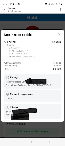 Péssimo atendimento, vai de mal a pior, era cliente a quase uns 8 anos, da época que era atendimento no balcão ou entrega. Atraso de duas horas e quando ia chegar motoca ligou dizendo q ainda trouxe a pizza errada, cancelei e não voltaria a comprar, passados alguns meses, eu tenho q me f*der msm, voltei a pedir, daí faço pedido, 63 reais e mais 5 de entrega, quando veio entregar motoboy falou q era 75, q o preço de 63 era promoção de retirada no balcão, mostrei a tela do celular com o valor de 68 com entrega, nem ligou disse q era pra ligar pra lá, q só cumpria ordens, tá certo ele. NÃO VOLTO A PEDIR MAIS. Falta de respeito...