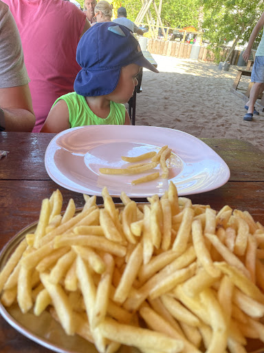 Gostei bastante da proposta do restaurante. Você pode ficar dentro do restaurante a ainda sim com os pés na areia! Comemos pastel, bolinho de siri e batata frita. Particularmente para o meu paladar, acho que faltou alguma coisa, não que estivesse ruim. Pelo contrário, é que eu gosto mais “temperado”. E penso que é mais difícil usar mais temperos quando se atende uma variedade de público. Já meu marido gostou bastante. O tamanho da porção de batata e excelente, o bolinho de siri e Patel também, gigantes!