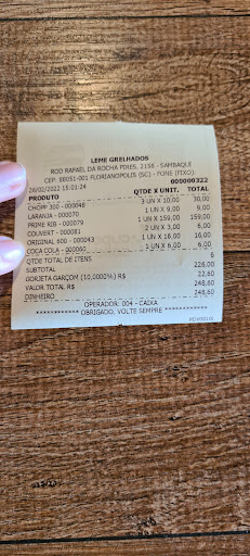 Read moreA comida deles é uma delícia. Eu adoro lugares rústicos, com uma decoração distina e cheia de criatividade. E assim é o Leme Grelhados. Eles recebem eventos e tem uma área para descontração com mesa de futebol de botão e sinuca. Eu vi uma exposição de fotos que amei e fui em um show cover do Elvis que estava muito divertido. Vale a pena o passeio até Sambaqui, o trajeto não economiza em lindas paisagens, além de você correr o risco de ser presenteado com um por do sol de suspirar. Vai lá e...