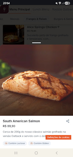 Nós pedimos o Kookaburra Aussie Tizer — aquele prato que combina croquetes de frango crocantes, asinhas (wings) e molhos variados, tudo pensado para ser servido junto, como uma experiência de petisco bem elaborada. Esse era meu pedido. O meu marido pediu o South American Salmon, e o plano era simples: comermos juntos e bem.