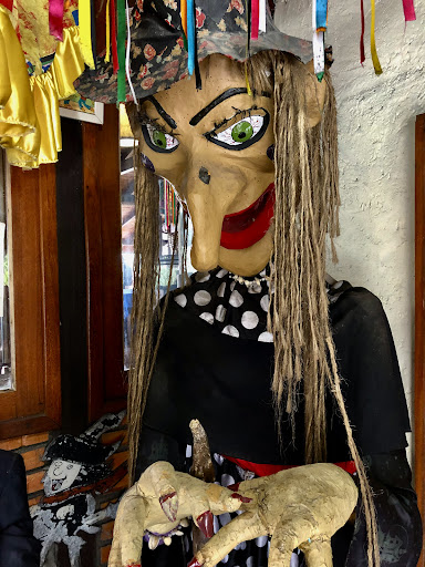 Talvez algum turista não entenda bem a profusa e colorida decoração, mas são todos elementos de tradições da Ilha: as bruxas e as figuras do Boi-de Mamão, entre bonecos e desenhos.