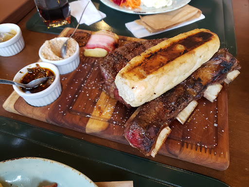 Read moreFui na expectativa após ter almoçado um bom entrecote em outro restaurante da cidade que não era especializado, fui nesse que por ser especializado achei q seria melhor. Entretanto não foi, fui bem atendido pelo Parrileiro e fui o 1o cliente... Creio que na pressa para n me deixar tanto tempo esperando as chamas da parrila estavam um pouco altas e o bife ficou meio seco por fora e um pouco abaixo do ponto que gostaria por dentro, os legumes que peguei assados ficaram com gosto muito forte da fumaça também. Voltaria ao local, pois pelas outras avaliações creio que fui eu que acabei dando...