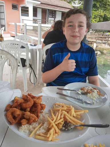 Ambiente muito simples, pratos fartos para 2 pessoas, porém os preços são de restaurante sofisticado, inclusive comparando com vários que ficam na mesma rua. Os peixes pedidos vieram todos carregados em alho (aviso porque há quem goste e há quem prefira peixes com temperos suaves), o pirão de caldo de peixe é servido com farinha crua (tipo de pirão que não costuma ser bem aceito como o feito a quente), aviso também porque vários pratos vêm guarnecidos com esse pirão e como poucas pessoas gostam, considero importante ressaltar esse detalhe. Os garçons não sabem informar quais peixes estão na cozinha e não existe opção de prato fora do cardápio, ou seja, não invente de pedir pesca do dia frita em postas acompanhada de um pirão 'meia de seda', prato típico da ilha, que você não vai conseguir. Porque ninguém sabe qual a pesca do dia, qual peixe está mais fresco na cozinha e o pirão é com a farinha crua. Atrás tem um deck coberto mas aberto, com mesas nas quais se pode comer acima da água do mar apreciando a brisa e a bela vista. Porém ali é estreito demais para permanecer à mesa, inclusive é bom esclarecer que as mesas do deck assim como as cadeiras são plásticas e unindo isso a pessoas esbarrando nas cadeiras e mesas para passar no pequeno espaço, torna o lugar desconfortável e a experiência desagradável. As batatas fritas foram uma surpresa agradável, embora congeladas, estavam crocantes e no ponto certo. Tem umas 4 ou 5 vagas pra carro pequeno (não me recordo com exatidão inclusive porque não consegui estacionar na frente). Aceita cartões e...