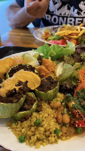 Read moreAmei a comida! Tudo muito gostoso e bem feitinho! Fui para almoçar, no horário de 12h15 mais ou menos eu cheguei. Havia fila para fora, e todas as mesas ocupadas. Devido a isso, uma funcionária estava administrando a situação, pedindo para os clientes da fila aguardarem antes de iniciar a servida do buffet. A fila andou rápido até. O buffet era bem variado e com muitas opções nutritivas, cheias de fibras e diferentes do básico. Meu prato pesou umas 300gr e custou R$29. As funcionárias todas educadas, prestativas e simpáticas. O ambiente é pequeno e possui área interna e externa. A externa é...