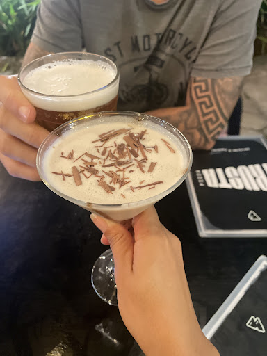 Nossa experiência foi muito boa! O atendimento chamou atenção logo de cara: equipe simpática, atenciosa e o serviço foi bem rápido, o que sempre faz diferença. Pedimos um drink Alexander, que estava gostoso, bem equilibrado e servido no ponto certo. Também provamos a pilsen, que era saborosa e tinha um preço bem justo — ótimo custo-benefício para quem quer uma cerveja leve. As pizzas foram o destaque da noite. A de quatro queijos e a de lombinho com molho de alho negro estavam deliciosas, com sabores bem marcantes e ingredientes de qualidade. Já a de frango e a de pepperoni estavam boas, mas não surpreenderam tanto — ainda assim, são boas opções para variar. A massa é diferente: bem fininha, super crocante, tipo um crostini. Para quem gosta de massas leves e crocantes, é um prato cheio. O ambiente é descontraído, acolhedor e pet friendly, perfeito para um programa mais relax. O espaço não é muito grande, mas é bem agradável. No geral, foi uma ótima experiência. Voltaria para experimentar outros sabores de pizza e drinks, e acho que é um lugar que agrada quem busca um clima mais informal, comida gostosa e...