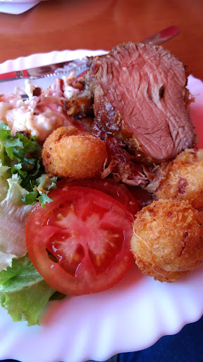 Self service from a buffet (hot and cold food, enough variety). Also available grilled meats. Dessert served as courtesy. Table service for drinks only. Nice atmosfere. Cool for going with family or work collegues (hard to allocate many people on the same area). Two different table areas. Service and restrooms areas clean. Open from 11:00 to 15:00. No reservation required. You can...