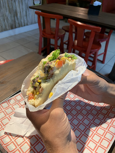 Pior lugar de Garopaba, atendimento péssimo. Eles não dividem o lanche ao meio, tem a opção deles darem um prato com talher para o cliente dividir na mesa, só que para isso eles cobram uma taxa o que não foi avisado pelo garçon na hora que fizemos o pedido , um cumulo de absurdo. Pedimos para embalar para viagem o que é prática em todo estabelecimento que vende refeição , o atendente mal educado só jogou um sacolinha plastica em cima da nossa mesa. Só lanchamos pela fome de meus irmãos , eu não consegui comer perdi a fome já na hora de fazer o pedido , devido ao mal atendimento. Quem comeu na minha mesa reclamou que o pão estava muito gorduroso e a maionese caseira totalmente insonsa .O banheiro estava interditado ....