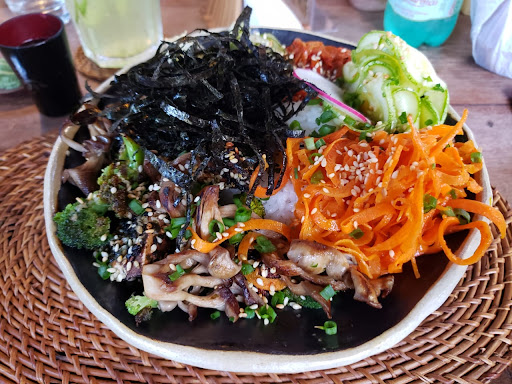 This is the cosiest bistro you could imagine. With a view of a lagoon, and in the middle of a beautiful garden, little can take your mind away from the moment. The vegan sushi bowl, "Yumi" is do die for. Perfectly balanced and colourful. It is a delight to eat. My partner had the veggie mushroom burger without cheese. And liked it a lot. Especially the vegan mayonese. Also, there are somen options, and several home made desserts, and loads of vegan options. Drinks options are also bountyful. Come one day just before sunset, and enjoy the flight of the birds every evening around this time. A sight not...