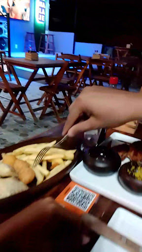 O ambiente é bom. So tinha uma atendente, na parte superior, por isso a demora para atender os pedidos, faltou produtos do cardápio( água, coca em lata). O ponto positivo é a musica ao vivo e os espetinhos que säo uma delícia, "apesar da demora pra...