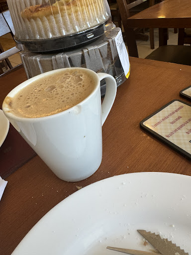 Tem opção de caldos, canja, sopa de feijão. Self-service com opções de cuscuz, ovo, carne moída, calabresa, patês, salsicha ao molho, pães, salgadinhos, docinhos, etc.